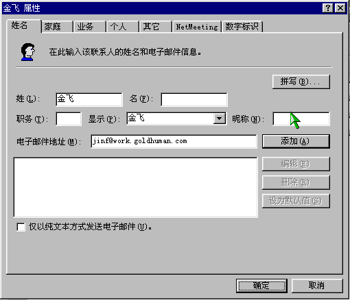 如果收件人姓名有下划实线,那么证明收件人的电子邮件地址已经成功找到了。红色波浪线,例如画红色波浪线的一个“李”字,表示联系人文件夹里有多个姓李的联系人,这时Outlook就不知道要用哪一个联系人的地址了。这时,我们就需要指定具体是哪个联系人的地址。我们可以右单击“李”字,选择“通讯簿”选项,在联系人列表里选择要指定的联系人,单击“确定”按钮。这时“李”字就变成相应的联系人姓名并带有下划实线了。至于没有下划线的,表示收件人的姓名在联系人文件夹里没有,Outlook没法得到收件人的电子邮件地址。还需要进行“新建联系人”或者将该姓名改为收件人的地址。“新建联系人”的方法如下:单击“新建联系人”,在弹出的对话框里输入必要的信息,单击“确定”,这时收件人姓名就有下划实线了。