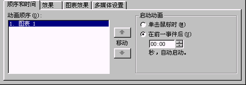 最后再来设置激活动画的方式,我们点“顺序和时间”选项卡,选中“在前一事件后”。(如图11)这和文本框的动画设置是基本一样的。