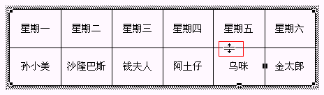 表格处于选定或编辑状态下的时候,还可以拖动相应的表格线来调整表格中某些行的行高或某些列的列宽。将鼠标光标移到水平表格线上的时候,光标会变为,此时向上拖动鼠标则会使此表格线上面的那一行行高减小,向下拖动鼠标会使此表格线上面的那一行行高增大(如下图)。