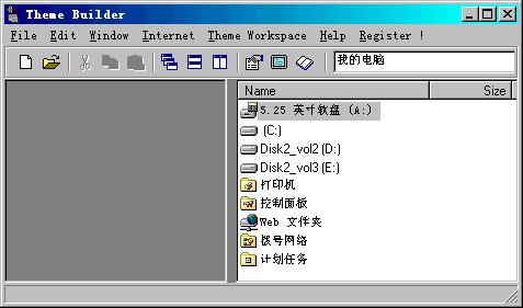 一、什么是桌面主题? 不知大家有没有看到有些人机器上的鼠标的形状千奇百怪,开机时的声音也不再是千篇一律的微软之声,所有这些属于桌面主题,它其实就是设置桌面、图标、光标、声音等的一个组合。那怎么达到这种效果,怎么能够随心所欲的调整成自己喜欢的计算机风格呢?如果你拥有了Theme Builder,想达到这个效果,简直就是小菜一碟。Theme Builder的功能主要是用来自定义计算机的风格,包括桌面、图标、光标、声音、背景配色、开关机画面、Web背景等,此工具最适合有个性的您来定义自己别具风格的桌面主题了。 二、安装Theme Builder 该软件是以ZIP为后缀的自解压文件,安装前先要释放压缩包中的文件,在你的硬盘上建立一目录,将压缩包文件释放到其下即可。 找到所放的目录,运行目录中的Setup.exe文件,按照屏幕上所提示的信息进行操作,安装过程没有什么需要特殊填写的地方。 安装完成以后,点击“开始/程序/Theme Builder/Theme Builder”,直接点击就可以使用了。