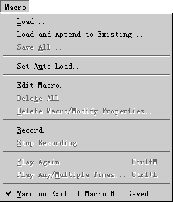 在Macro菜单下,提供了丰富的宏功能处理:宏记录、宏编辑、宏调用等,可以简化文本编辑中经常重复的操作,以提供使用效率。
