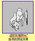 | GIF Movie Gear还允许我们对动画中的某一帧进行移动、旋转等处理。比如,要移动某一帧在画面中的位置,只需先用鼠标选中要处理的帧,然后点一下“Frame”菜单中的“Move/Crop”项。  在弹出的“Move/Crop Frame”对话框中,左面显示着这一帧的图案,图中有一个矩形的框,你可以用鼠标拖动来改变框的位置和大小,也可以在右边用具体的数值来进行设置,下面有几个复选框分别为: Show Previous:显示前一帧; Show Next:显示下一帧; Show First:显示第一帧; Show Frame Cropped:显示帧被切后的结果。  点“OK”后,这一帧就改变了。 帧的旋转方法也差不多,先选中要旋转的帧,再点“Frame”菜单中的“Rotate”项,再从它的下级子菜单中选择想旋转的角度: Rotate 180°:旋转180°; Rotate 90° CW:顺时针旋转90°; Rotate 90° CCW:逆时针旋转90°。  Flip Horizontally:水平翻转; Flip Vertically:垂直翻转。 比如我们选择“Rotate 180°”,瞧,这一帧改变了。 |