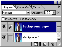 预览成品: 逐步说明: (图1) (图2) 2.用Ctrl+O快捷键打开一幅你喜爱的照片,用自由对象工具 (图3) (图4) 3.在层工具面板中用鼠标拖动图层到面板下方的新建层图标上 (图5) (图6) 4.用“Image”菜单下的“Adjust”调整选项中的“Threshold”-----(点转换工具)将点化效果处理后的点转化为黑白色调,在弹出的对话框中按如图8所示进行设置。