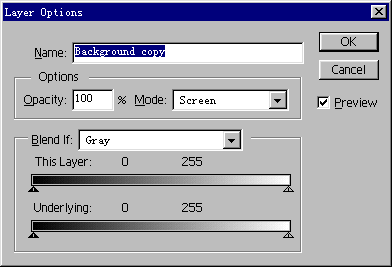 (图7) (图8) 5.选取“Layer”菜单下的“Layer Options”命令调整该层的叠放模式,在弹出的对话框中如图10所示进行设置。