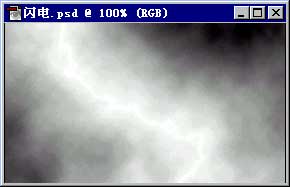 3、单击虑镜菜单,选择渲染,再选择分层云彩虑镜。( Filter > Render > Difference Clouds )得到下面的效果。(注意:因为分层云彩的效果是随机产生的,故要创建好的闪电效果,就要多次重复这一步骤,直到得到满意的效果) 4、单击图象菜单,选择调整,选择自动色阶命令(Image>Adjust>Auto Levels),自动色阶调整后的图象如下。
