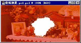 2、在工具箱中点击选取工具,在图中选区一个区域,这个区域最终是烧洞的效果,为了逼真,最好选的区域是不规则的。如图。