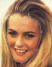 7、此时你可以看到图象基本就移过来来了,但是你发现没有图象有很多都不太合理,如图象的边缘太锐利,以及图象的额头部分及颜色都不太自然,给人一种带了假面具的感觉? 8、在工具箱中选择多边套选工具