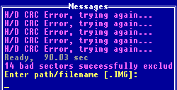 | ☆3.映像文件 如果而手头上没有软盘的话,该怎么办呢?岂不是急死人了! 没关系,把刚才读出来的数据做一个IMG的映像文件,存放到硬盘上就行了。 等你有了软盘后,再写到软盘上。 将光标移到“Put to file”上回车,在最下面一行出现光标闪动,输BOOT.IMG, 回车, “Transfer to file ok”表示数据保存完毕。 这个文件就象是将软盘的格式、数据做了一个镜像, 以后可以通过HD-COPY把它再写到其它软盘上,这样,那张盘上的数据就完全保存下来了,而且跟以前的那张软盘是一模一样的,没有丝毫的变化。 那又怎样把这个文件读出来呢? 将光标移到“Get from file”上回车, 输入文件名BOOT.IMG, 回车,  放一张盘到软驱里, 将光标移到“Write”上, 敲回车就开始写到软盘了。 ☆4.格式化软盘 用HD-COPY格式化软盘,能收到意想不到的结果。 它最显著的特点就是,格式化磁盘的速度快,而且质量较高。 对于那些有问题的软盘,HD-COPY能不断在有坏道的地方读取、初始化,所以能保证磁盘格式的质量。 现在,低密、单面盘已经不复存在,能见到的差不多只有3.5寸盘,一般容量为1.44MB。 所以我们只需要将它格为1.44MB就行了。 将光标移到“Format destination”上回车, 找到“HD standard,18 sect,1.44MB”回车, 就开始格式化软盘了。 ☆5.维护软驱 当计算机用了很久后,软驱的磁头上会因为积满了灰尘,而读不出数据,在很大程度上,这也是损坏软盘的一个原因。我们可以通过使用软驱清洗盘来清洗软驱磁头上的灰尘。 将清洗盘插入软驱。将光标移到“Special Menu”上回车,再移到“Use Cleaning Disk”项上回车,HD-COPY开始清洗软驱了。  把你刚才没能读出的盘放进去试试,有什么发现?数据读出来了 ☆6.看文件列表 有时候在用HD-COPY读了一张软盘后,却记不清楚里面的内容是不是我们所需要的,又要退出HD-COPY,再敲DIR也是很麻烦。有没有办法直接看到它的文件列表呢? 当然有了, 把光标移到“Special menu”上,回车, 再移到第五行“Display directory”,回车,你看,文件名就列出来了,还能看到文件名的属性呢。  关于HD-Copy就介绍这么多,如果您还是很眷恋DOS,就请下载吧,它将对您有很大的帮助。 上一节 |