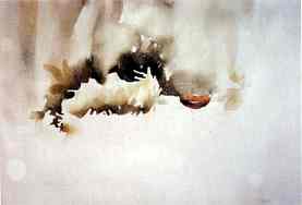 在已经比较干的背景外画出布的形,并进一步画小箩筐的细部结构,然后逐步的画出物体的投影处的颜色