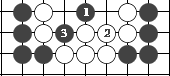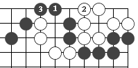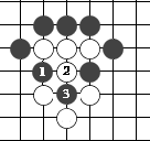 如图6,黑1双吃,白2连,黑3提白一子。白2如在3位长,那黑3可下2位提白两子。 (图6)