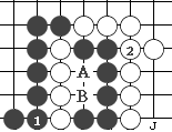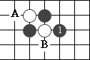 (图1) 如图2,黑1打吃,白就不能在A位打吃黑子了。白如在A位打吃黑子,那黑可下B位提白一子。