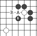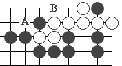 图28,在右边的棋形中,黑棋下B位即可提白三子。左边的棋形中,如果黑方采取一种手段迫使白在A位下一子,那么黑也可提白三子。