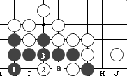 (图38) 图39:白方先紧气,自白1到白3,白方先把两个黑子吃掉。