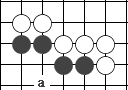 图53:黑先求活。黑1好,既保证角上一只眼,又保证了边上一只眼。白2点,黑棋切不可在a位提吃一子,因为白有了3位撞进,进而倒扑破眼的手段。