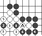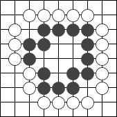 右图是让二子的局面,终局后黑方须贴还白方一个子。  左图 中图