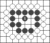 图76:黑1是做活"花五"眼形的唯一点。对白棋而言是可点杀死黑"花五"眼形