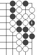 (图9) 如图10,黑1门吃三个白子是正确下法。如果白2长,黑3提白四个子,成为图11的形状。这时白可下1位回提一子,叫"提四还一"。