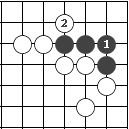 两个黑子,但如果如图所示,黑1简单地在1位打 吃,白2连,黑再无法吃白棋了。