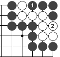 (图84) 图85:黑1连,白2扳,黑棋被杀了。