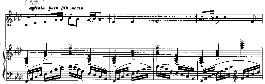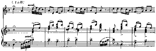 (3)入慢: 高潮之后,情绪逐步平稳下来,进入琴曲的"入慢"。这时往往利用明显的节奏对比或调性变化,把乐曲引进一个新的境界。