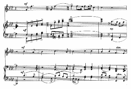 (5)尾声: 经过上述一系列的发展变化,最后用泛音奏出轻盈徐缓的乐句,把全曲结束在主音上,造成余音袅袅的效果。许多琴曲的"尾声"就是这样构成的。