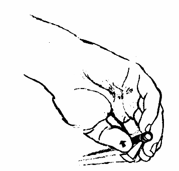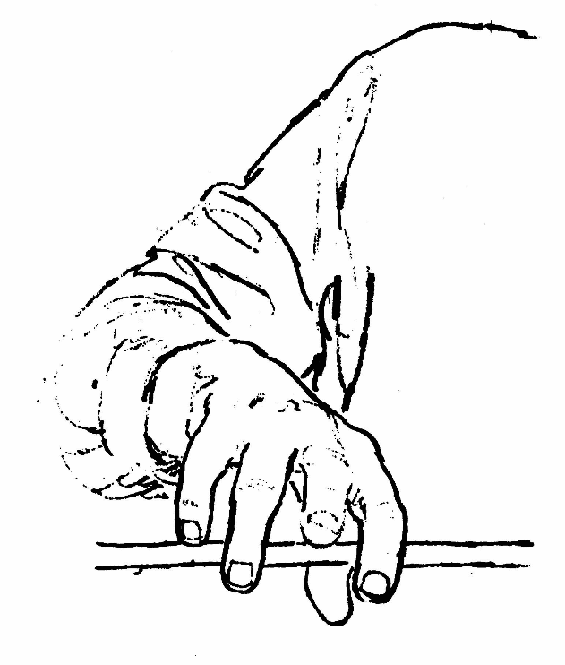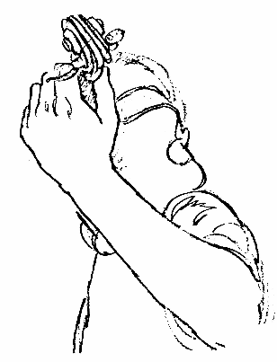 练习四:如图19 同前一样,只是这次肘部保持其本身下垂的姿势,并把拇指伸直为止。