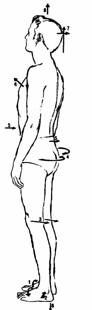 脚跟、大脚趾和其它脚趾正在试图蹬开地面.这些调整无论多么仔细,应该在一次吸气中做 完,如果没有训练过呼吸,做这些调整占时间过长的话,可用几次吸气来做完。