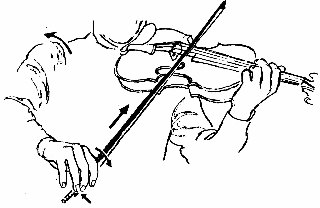 抬弓的弓子部位非常关键,取决于想要拉的速度、声音和音量。最好的正常位置一个是:当手腕与恰手指下垂,实际上右手正抬弓时,肘部在弓子上下低到朝下的程度;另一个是:肘部抬高到能够使弓子具备自然弹跳和控制速度与轻松的位置,还要抬高到只能够使用中指、食指和拇指的程度。手腕必须始终处于松弛状态。