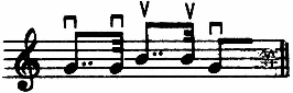凸出的姿势。 图28 E:分弓弓法的附点节奏 如图29: 采用一种附点节奏的弓法。