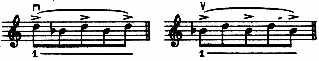 这些练习相隔一个全音应该在两根弦上用左手手指按住两个音来练习。需要换把,不用伸指。除了与下弓和上弓运弓动作相关的一般身体摇摆外,在每一个强调的音符上让身体略微有一点转动。