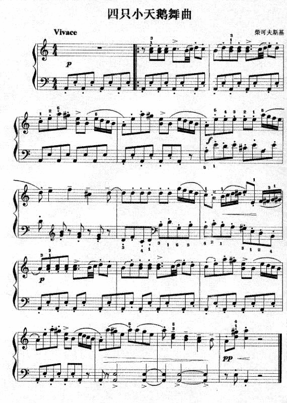 (3):使用好的琴弦。 (4):弓杆必须绝对正直。 10:小提琴琴谱(完整篇) (1)四只小天鹅(柴可夫斯基)