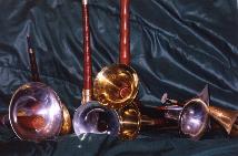 唢呐,在木制的锥形管子上开八孔(前七后一),木管上端装一铜管,铜管上端套一苇制哨子,木管下端装一喇叭形铜质扩音器。音色高亢明亮,有的民间艺人能控制气息,吹出柔美的声音。经过改革的唢呐有高、中、低三种,有的还加了音键,扩大了音域。唢呐由双簧哨子(芦苇制成)、蕊子(铜制)、杆子(木质圆锥体,共有八个音孔,前七后一)和铜碗(喇叭形)四部分组成,竖吹,有大小不同的规格。