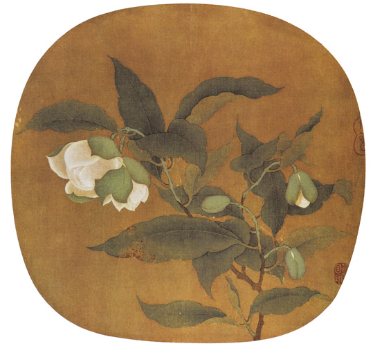 此图原载《纨扇画册》(见《石渠宝笈》)。无作者姓氏。状物极精致,是南宋初期画院中高手所作。