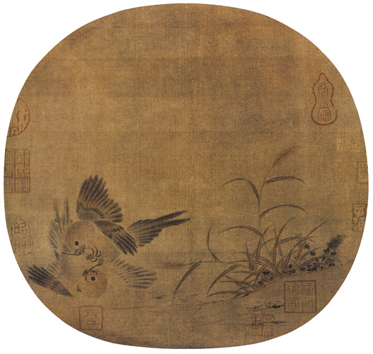 此图原载《历代名笔集胜册》第一册(见《虚斋名画录》)。签题黄居寀作。按此画绝不类居作,无庸附会其名,故今改题为无名氏作。