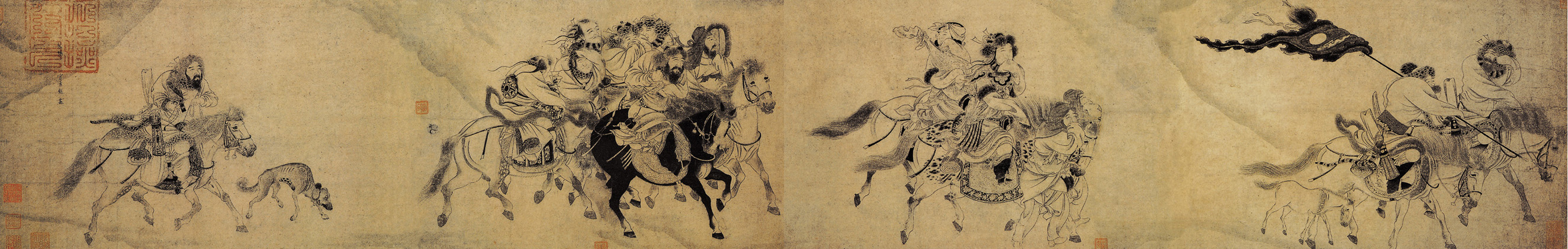 此图取材于西汉元帝时王昭君出塞的历史故事。图绘昭君出使匈奴,跋涉塞外的情景。画面没有任何背景,主要通过人物情态来表现出塞景象。画面塑造的人物也各具情态,王昭君神态自若,汉官员持重端肃,匈奴武士粗犷强悍。