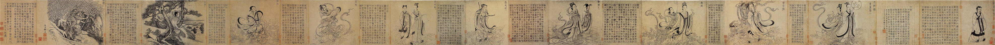 张渥(?—1356),字叔厚,号贞期生,杭州人。工人物,尤长白描画法。此《九歌图》卷共十一段,每段一图,画屈原像及楚辞《九歌》中的《东皇太一》、《云中君》、《湘君》、《湘夫人》、《大司令》、《少司令》、《东君》、《河伯》、《山鬼》、《国殇》十章内容。