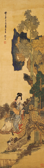 清 任熊 绢本设色 纵154.5厘米 横41厘米 清华大学美术学院藏
