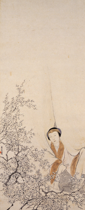 任预曾生活在社会底层,目睹帝国主义的蹂躏和上海殖民地化,因而在一些创作中颇多针砭寄情之作,蕴含了一定的思想性。《梅花仕女图》用圆劲方折的线条表现出仕女的清秀纤细,作为背景的梅花则用没骨法晕染,在一种迷蒙中映衬出仕女的秀雅清丽。
