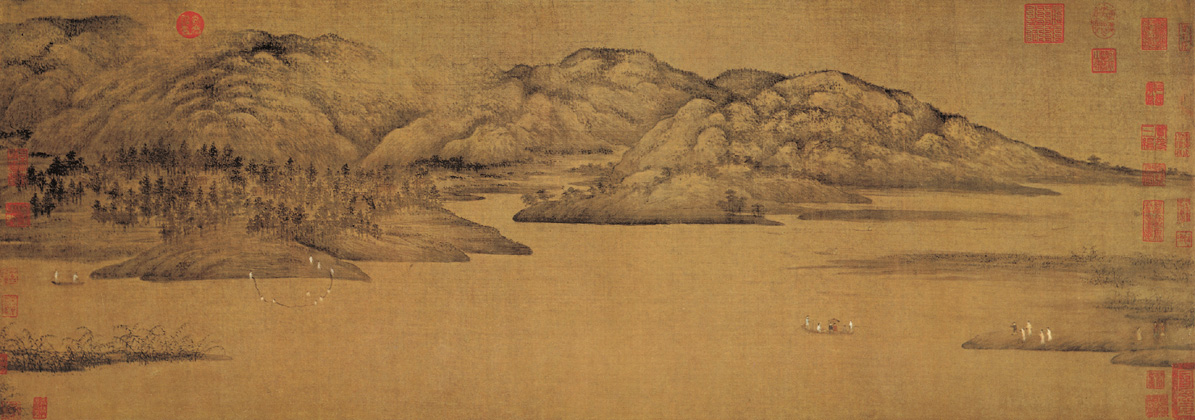 012 《潇湘图》 五代 董源 绢本设色 纵50.2厘米 横140厘米 北京故宫博物院藏 |
