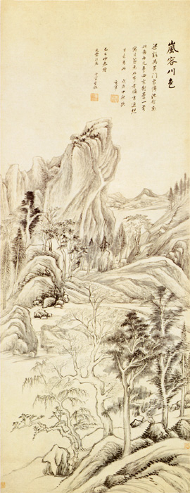 董其昌与莫是龙、陈继儒倡南北宗说,把“院体”山水画与“文人画”分为南北两派,随着宗派观念的深入,形成一种形式主义,陈陈相因,给清代三百年画坛造成了极大的影响。此图是董其昌山水绘画的代表作品之一。画幅上画家自题。此画兼具黄公望和倪瓒二家画法,虽然在画家的自题诗中称追想沈启南画意,实际出自董其昌自己的胸臆。表现笔墨为长,尤见笔墨特色,笔墨秀逸,墨淡而不掩用笔之迹。其画山石凹凸向背分明,峭丽中含淡逸之意。