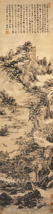 清 髡残 纸本淡设色 纵125.7厘米 横31.4厘米 北京故宫博物院藏