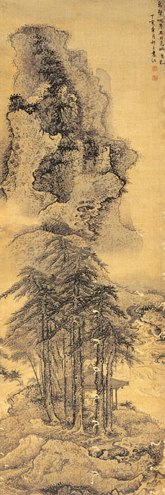 清 袁江 绢本墨笔 纵153厘米 横51厘米 天津美术学院藏