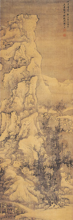 清 袁江 绢本墨笔 纵153厘米 横51厘米 天津美术学院藏