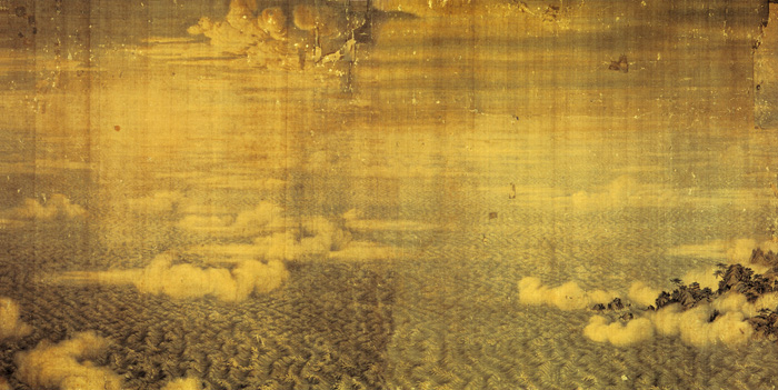 全画气势恢宏,虚实处理十分讲究而富有节奏感。体现了自然界的一种和谐、融洽的关系。此画在具体的描绘手法上,郎世宁充分发挥了欧洲绘画注重明暗、立体感、解剖准确及透视的特点,使画幅别开生面。