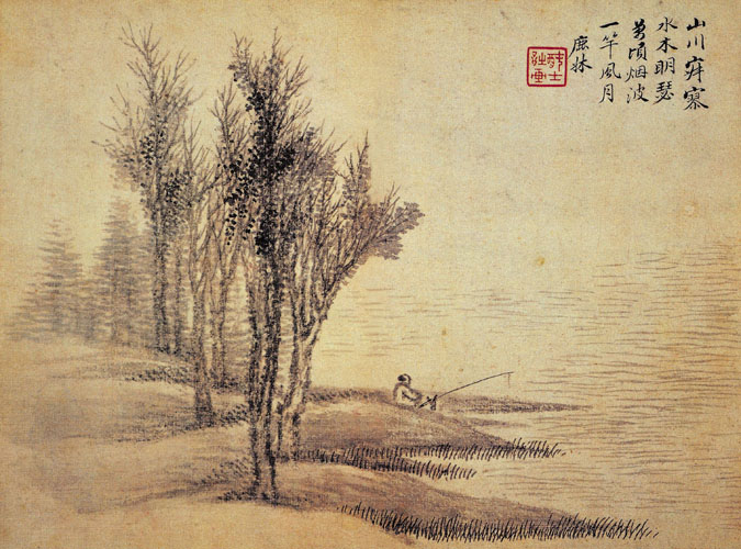 戴熙虽然也是从王翚一路入手,却能别出心裁。加上清末考据与金石学的兴盛,戴熙也融入了倡导碑学的潮流,在绘画中吸取了书法篆刻的长处,以金石入画,形成了一种极其微妙的、富有创造性的绘画风格。此画用笔扎实,笔笔有入木三分之感,山岚河川也由于厚重的墨笔而罩上了老成的色调,形成了画面空旷的意境。