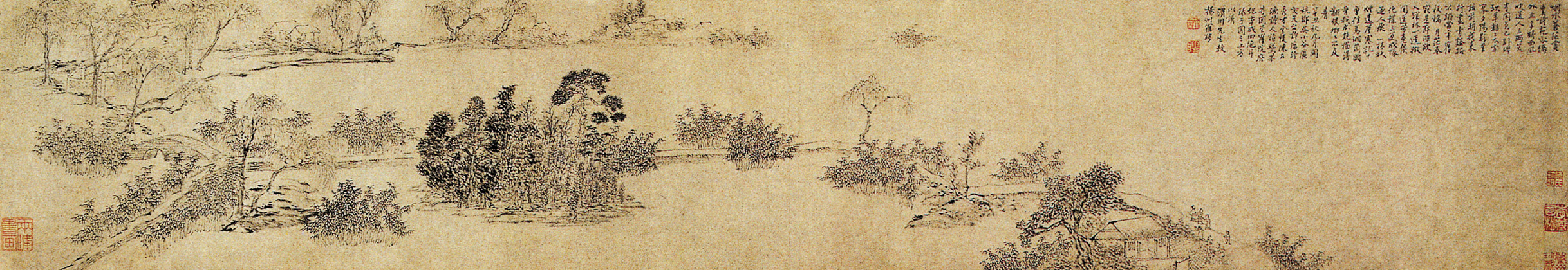 罗聘, 中国清代画家, 扬州八怪之一, 号两峰, 别号花之寺僧等, 原籍安徽, 后迁居扬州。他幼年丧父, 家贫, 跟随金农学画, 聪明颖悟, 曾为师代笔应酬, 遍游名山大川。罗聘有多方面绘画才能, 人物, 肖像、山水、花卉均有很高造诣。其绘画题材广泛, 笔法凝重。他的肖像画, 继承了金农的写意手法, 注重人物的精神气质。此画是他山水画代表作。