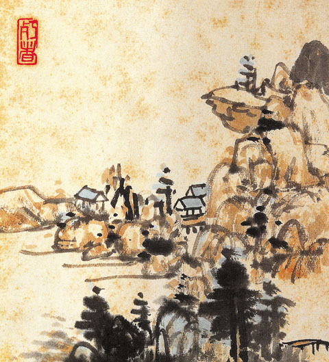 陈师曾(1876—1923), 陈师曾画过许多诗意图。他曾说:“四王派的画遍天下,我们必须别寻门径。别树一帜,方能出人头地。若随波逐流,投世所好,不但不能越过王派中的首领,恐怕也未必能赶上王派中的徒弟。”《诗画册》是画家晚年所画,用笔的大胆泼辣,布局的独出心裁,不落俗套,不蹈前人蹊径,勾石精线,干笔显出很超脱,石块层峦气势浑厚,刚劲,有张力。石块略加敷石色整体中有变化,粗中有细。
