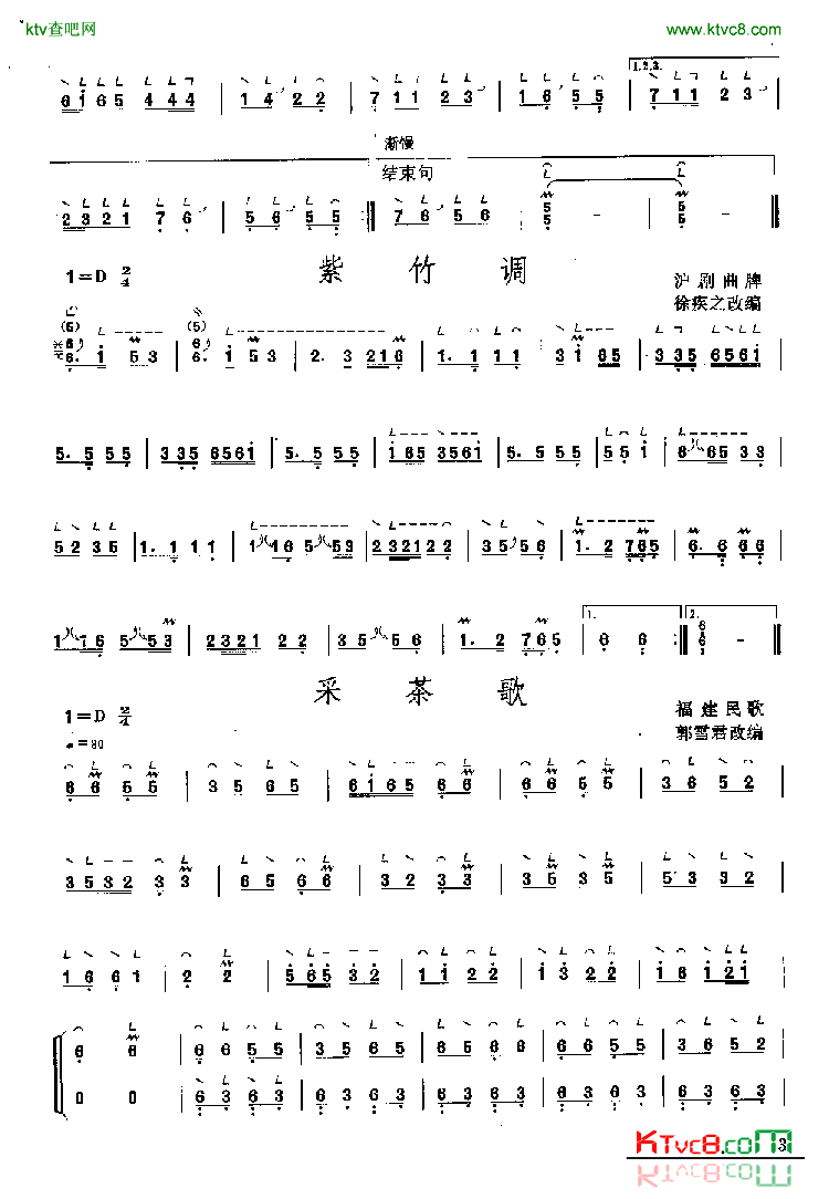 巴乌《竹楼情歌葫芦丝或巴乌谱[笛萧曲