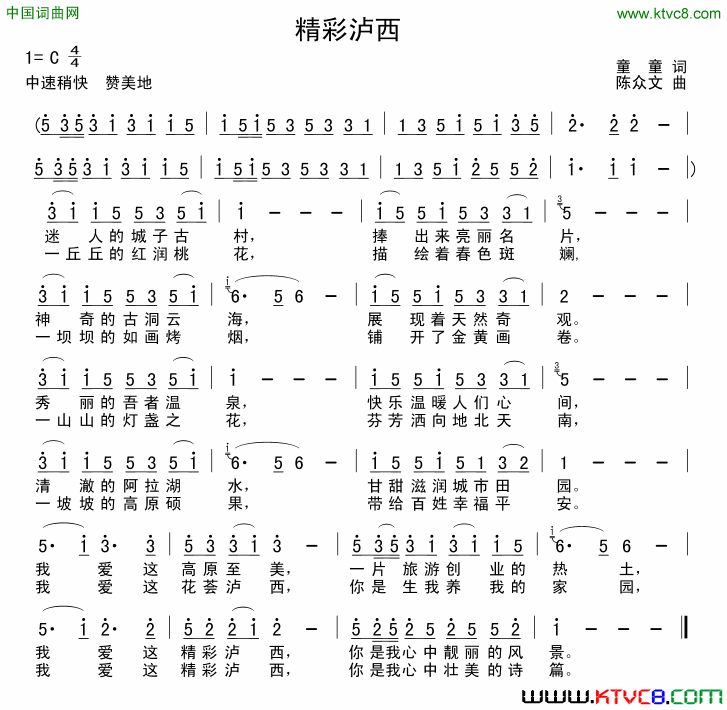 陈众文声明:作品版权归 词作者童童 曲作者陈众文 所有,未经同意,禁止转载使用!