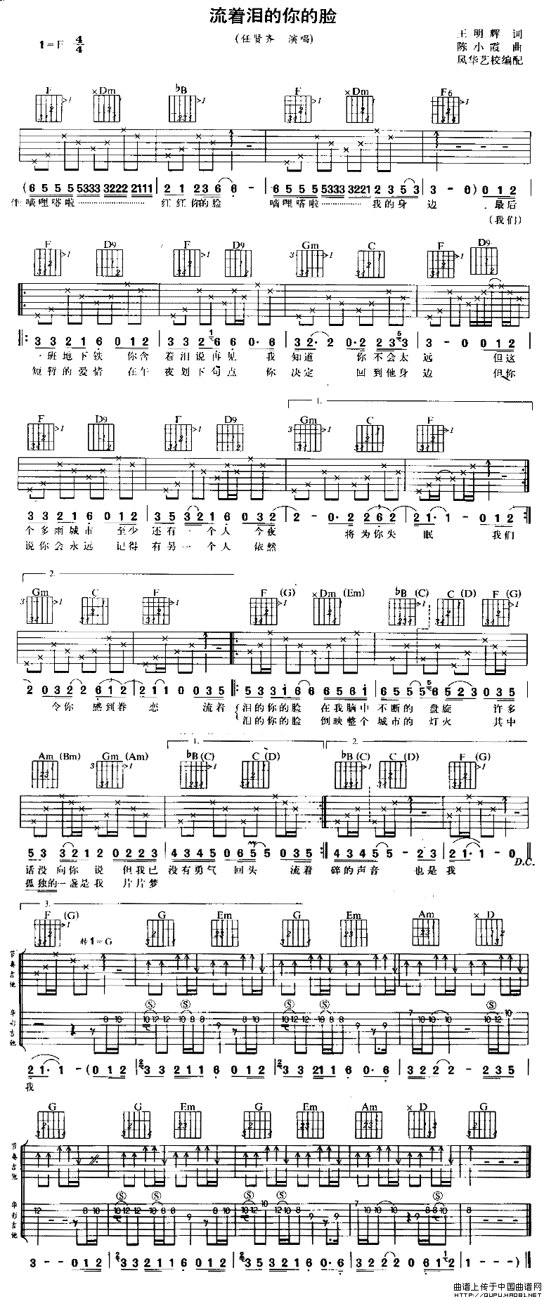 吉他《流着泪的你的脸》